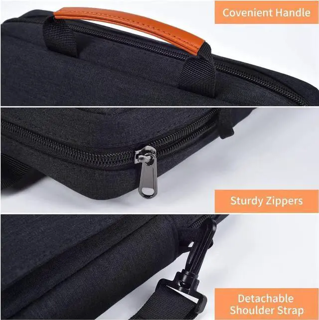 This 9-11 Inch laptop shoulder bag sleeve not only has main compartment to store your laptop or iPad, but also provides the outer storage pockets (pocket size: 8.66x 8.66in) which are ideal for storage of daily necessaries such as chargers, cell phones, cables, mouse, pens, earphones, power adapters, cards, power banks etc.