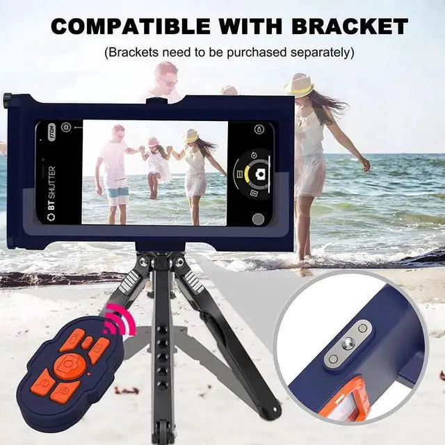 Full body sealed design, protect your phone from water,shock,impact and more.Built-in compass and bracket mounting hole,meet your underwater photography needs