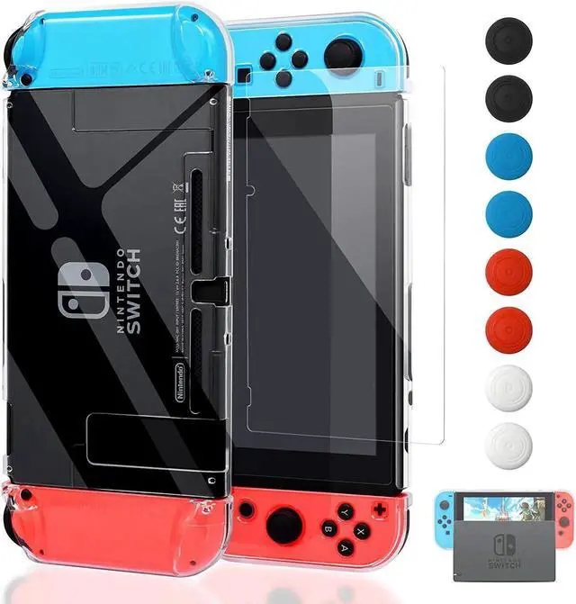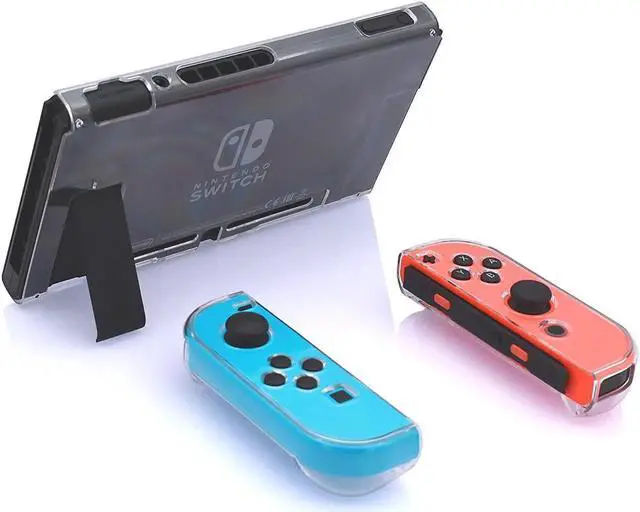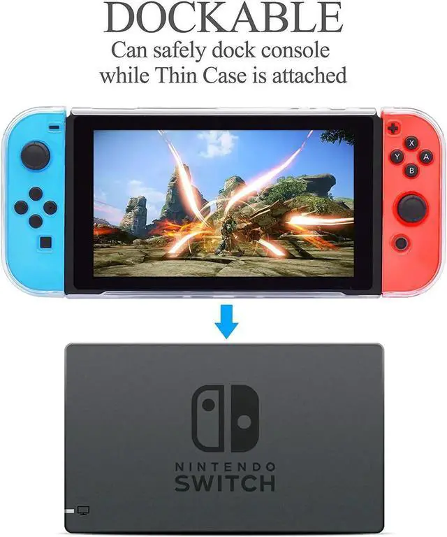 Highlights: New Design available - We have fixed all minor issues mentioned in some reviews: 1. The buttons line up in the case. So you can press the L+R triggers. Joy-Cons can be removed while thin case is attached. 2. You can dock the system with this case. No Need to Remove and Fit in the Dock - The release buttons are very easy to get to so the joy con sticks are easy to get off once attached to the switch. The device fits in the dock with the case. You don't have to detach the case to take the Joy con off with Split-Type Design. Crystal Clear and Good Touch Feeling - Slim and lightweight. Easy to hold by hand. It will be very comfortable. You don't worry that it will like the silicone case that get dusty and dirty easily. Fingerprints on the case can be scrubbed off or smoothed with clean wet tissues. Super Secure and Easy to Install - It can protect your Switch in case when you drop it. We offer the front cases so your joy cons will be protected better. All cutouts are easy access to all ports and buttons.