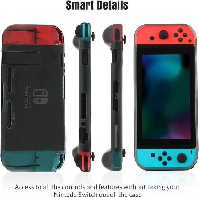 (Not include Nintendo Switch) Features: COMFORTABLE GRIP This protective case is specially designed for Nintendo Switch, it's ergonomic design offers you a comfortable grip for playing handheld mode like a controller. You won't feel hand-tired with long hours playing time. FULL PROTECTION Made of Shock-absorption and Scratch-resistant TPU material, with precise cut-outs for all features and controls to access. Solid and strong to fully protect your switch from everyday bumps, drops, shocks, scratches. It's the perfect balance of flexibility and rigidity to make it protective and comfortable while fitting very well. FLEXIBLE TO TAKE ON AND OFF It's one whole piece protective case for Nintendo Switch, flexible to take on and off without damaging your joy-cons. Convenient and lightweight, good to fit in most carrying cases. (not fit in the DOCK with the case on) Nintendo Switch Protective Case This Nintendo Switch cover case is perfect designed for your nintendo switch. Flexible to take on and off without damaging your joy-cons. Made of a hybrid combination of soft, shock-absorbent TPU and damage-resistant material, gives you comfortable grip feelings and will fully protect your switch from every day bumps and drops.