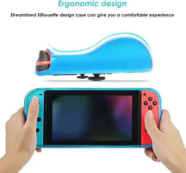 (Not include Nintendo Switch) Features: COMFORTABLE GRIP This protective case is specially designed for Nintendo Switch, it's ergonomic design offers you a comfortable grip for playing handheld mode like a controller. You won't feel hand-tired with long hours playing time. FULL PROTECTION Made of Shock-absorption and Scratch-resistant TPU material, with precise cut-outs for all features and controls to access. Solid and strong to fully protect your switch from everyday bumps, drops, shocks, scratches. It's the perfect balance of flexibility and rigidity to make it protective and comfortable while fitting very well. FLEXIBLE TO TAKE ON AND OFF It's one whole piece protective case for Nintendo Switch, flexible to take on and off without damaging your joy-cons. Convenient and lightweight, good to fit in most carrying cases. (not fit in the DOCK with the case on) Nintendo Switch Protective Case This Nintendo Switch cover case is perfect designed for your nintendo switch. Flexible to take on and off without damaging your joy-cons. Made of a hybrid combination of soft, shock-absorbent TPU and damage-resistant material, gives you comfortable grip feelings and will fully protect your switch from every day bumps and drops.