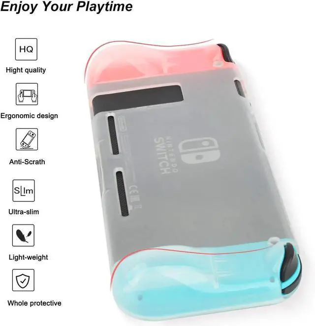 (Not include Nintendo Switch) Features: COMFORTABLE GRIP This protective case is specially designed for Nintendo Switch, it's ergonomic design offers you a comfortable grip for playing handheld mode like a controller. You won't feel hand-tired with long hours playing time. FULL PROTECTION Made of Shock-absorption and Scratch-resistant TPU material, with precise cut-outs for all features and controls to access. Solid and strong to fully protect your switch from everyday bumps, drops, shocks, scratches. It's the perfect balance of flexibility and rigidity to make it protective and comfortable while fitting very well. FLEXIBLE TO TAKE ON AND OFF It's one whole piece protective case for Nintendo Switch, flexible to take on and off without damaging your joy-cons. Convenient and lightweight, good to fit in most carrying cases. (not fit in the DOCK with the case on) Nintendo Switch Protective Case This Nintendo Switch cover case is perfect designed for your nintendo switch. Flexible to take on and off without damaging your joy-cons. Made of a hybrid combination of soft, shock-absorbent TPU and damage-resistant material, gives you comfortable grip feelings and will fully protect your switch from every day bumps and drops.