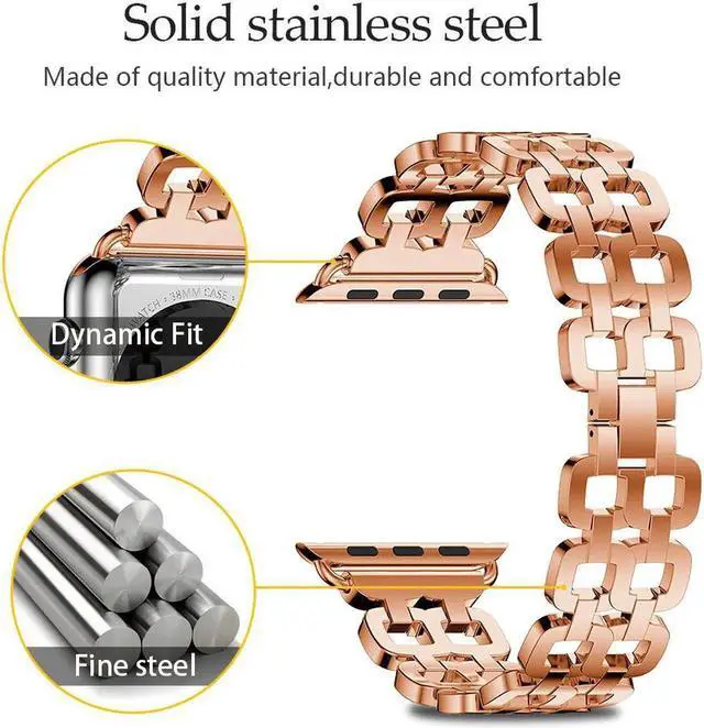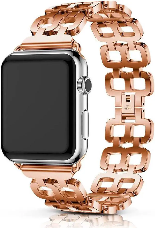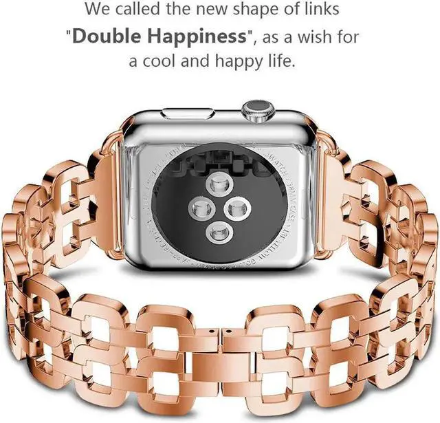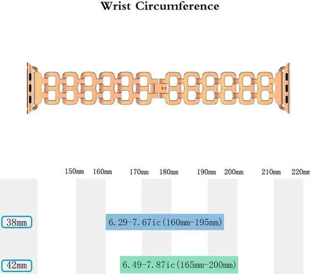 Highlights: [High fashion look with a streamline design] A classic metal link band combined with a fancy new look. Perfectly fit for most occassions, date/meeting/party/sports/travel. [Electroplated finish and quality 316L stainless steel material] Smooth surface offers you a comfortable touching feeling on your wrist. Holes in the band will allow your skin to breath. [Exquisite jewellery clasp locks the band securely] Clasp is durable enough to hold the watch well, so it won't unhooked easily from your wrist. [Adjustable solid chain links fits most wrists] We provide a link remover tool for adjustment. Half-size links included, easier to adjust a proper length than other metal bands. 38mm fits wrist 6.30" - 7.67" (160mm-195mm), 42mm fits wrist 6.50" - 7.87" (165mm-200mm). [Lifetime Customer Support] 12-month warranty and lifetime tech support. We are happy to resend a replacement band or accessory if there's any quality issues of the band. Please kindly contact us once there's any technical problems or quality issues. We're always here for you.