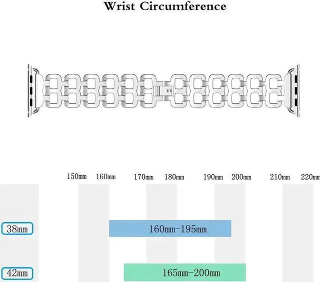 Highlights: [High fashion look with a streamline design] A classic metal link band combined with a fancy new look. Perfectly fit for most occassions, date/meeting/party/sports/travel. [Electroplated finish and quality 316L stainless steel material] Smooth surface offers you a comfortable touching feeling on your wrist. Holes in the band will allow your skin to breath. [Exquisite jewellery clasp locks the band securely] Clasp is durable enough to hold the watch well, so it won't unhooked easily from your wrist. [Adjustable solid chain links fits most wrists] We provide a link remover tool for adjustment. Half-size links included, easier to adjust a proper length than other metal bands. 38mm fits wrist 6.30" - 7.67" (160mm-195mm), 42mm fits wrist 6.50" - 7.87" (165mm-200mm). [Lifetime Customer Support] 12-month warranty and lifetime tech support. We are happy to resend a replacement band or accessory if there's any quality issues of the band. Please kindly contact us once there's any technical problems or quality issues. We're always here for you.