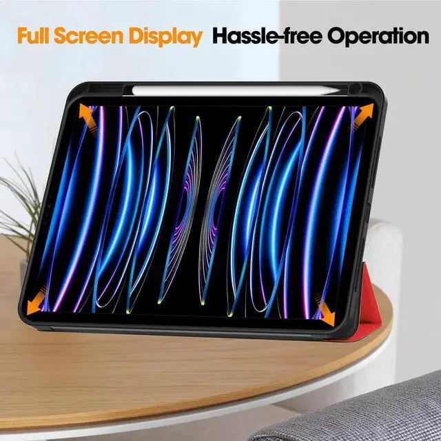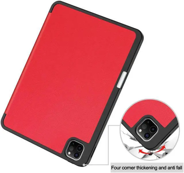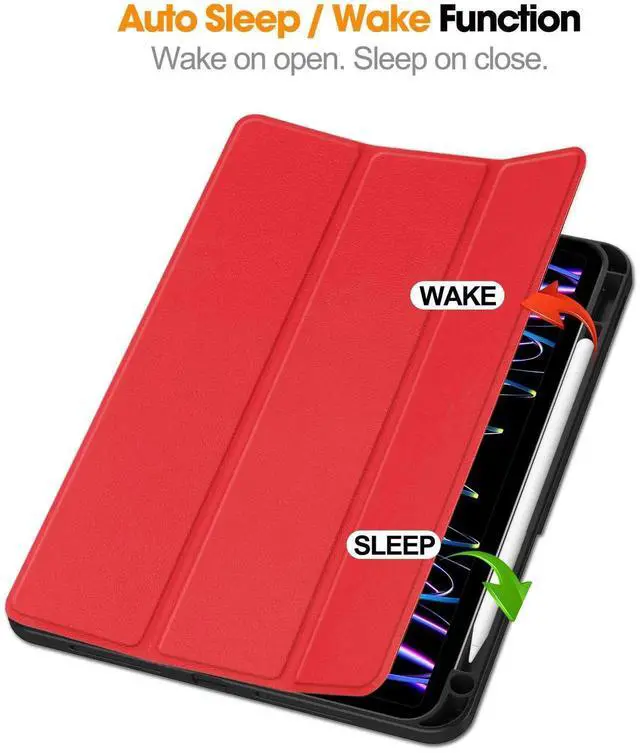 Case for iPad Pro 11 Inch 2022 2021 2020 2018, Slim Smart Stand Cover for for iPad Pro 11 4th Gen 2022/3rd Gen 2021/ 2nd Gen 2020/1st Gen 2018 with Pencil Holder, Universal Stylus Pen Red