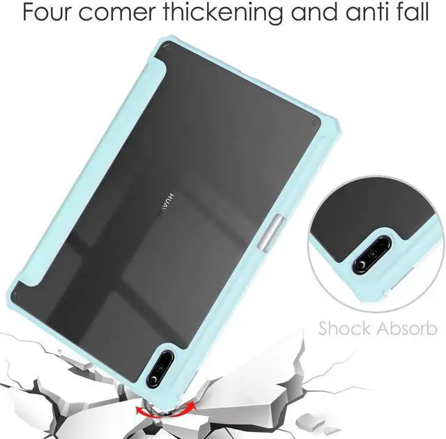 - Soft TPU frame of the back shell that more protective while case dropping; back transparent shell available to showing the beauty of the tablet.