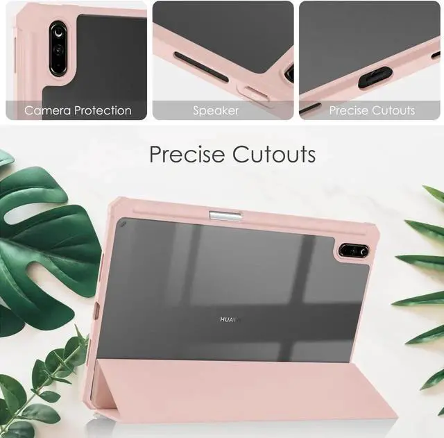 - Soft TPU frame of the back shell that more protective while case dropping; back transparent shell available to showing the beauty of the tablet.