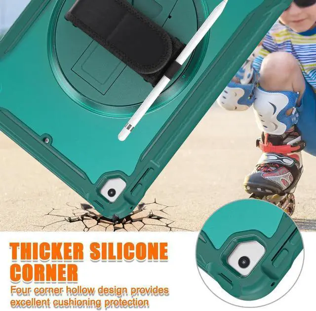 Stable rotatable kickstand: The iPad case with built-in 360 degree stand supports vertical/horizontal viewing of videos, typing and conference. Pick a nice angle, free up your hands!Ideal for kids stay-at-home online education.