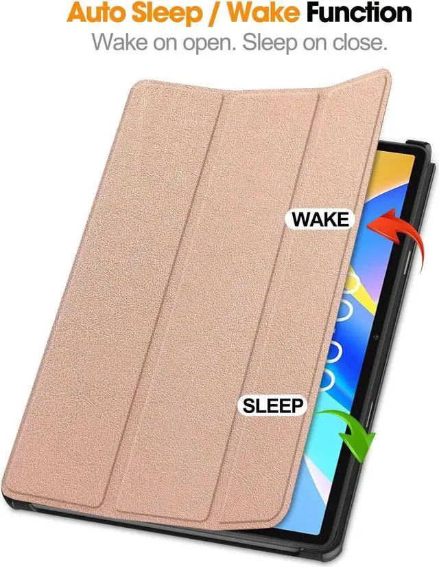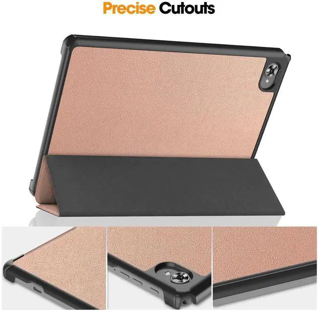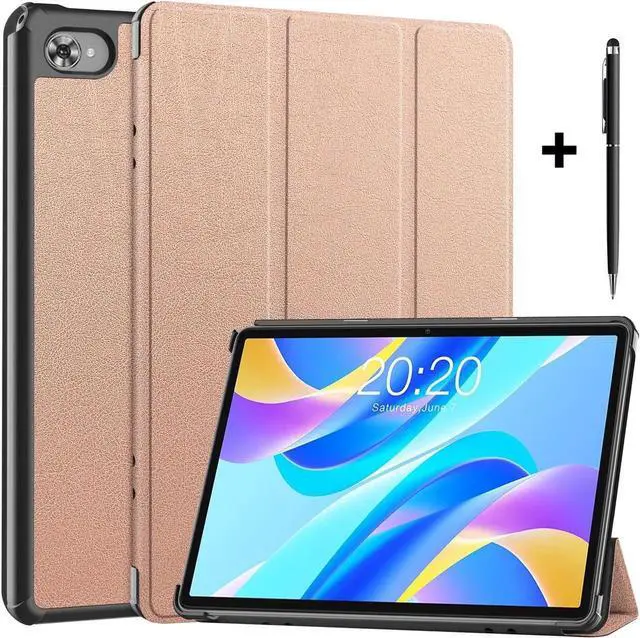 Case for Teclast M40 Plus 10.1 inch / P30S 10.1 inch / P40HD 10.1 inch, Tri fold Slim Lightweight Hard Shell Smart Protective Cover with Multi-Angle Stand, Universal Stylus Pen Rose Gold