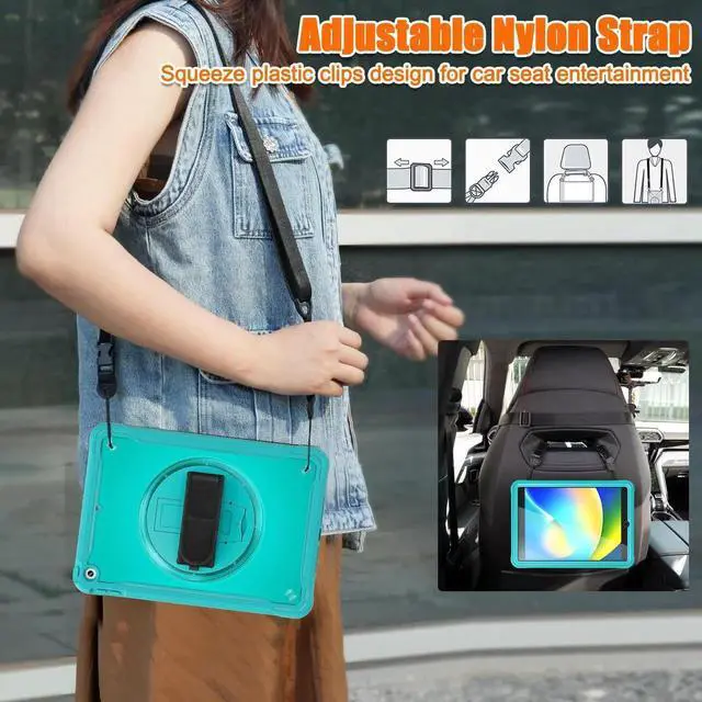 ADJUSTABLE HAND & SHOULDER STRAP: Handle can be adjusted depending on the dimension of your hand.The shoulder strap supports a more portable and secure way of carrying your iPad when you are outdoors.Perfect for during hiking, travelling and car seat.