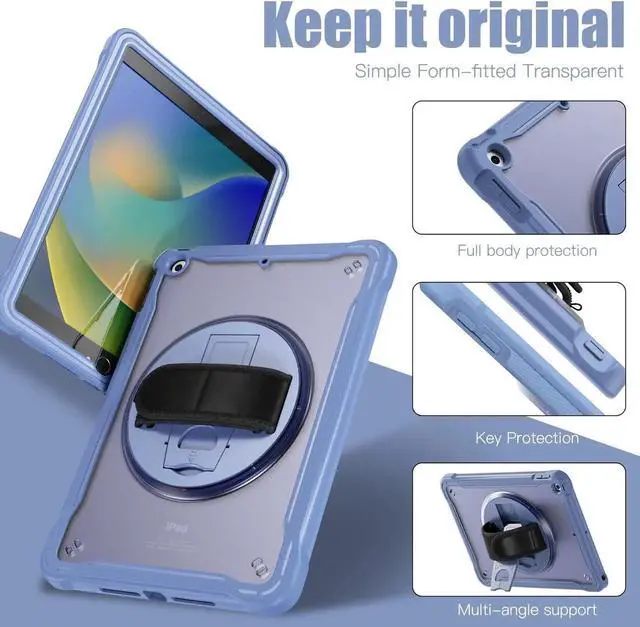 MILITARY-GRADE PROTECTION: iPad case Certified 15ft drop test, equipped with anti-collision impact-absorbing angle structure to disperse severe shocks. Shock-resistant, multi-layered iPad case with rugged PC clear back and flexible silicone rubber. Maximum protection for your devices.