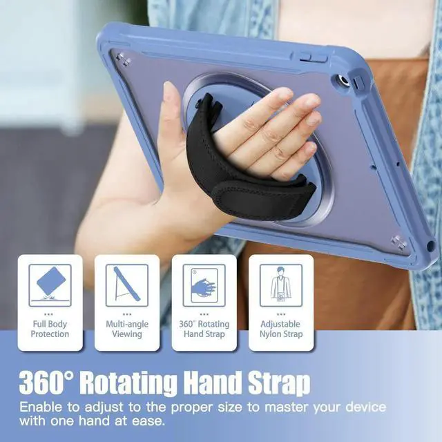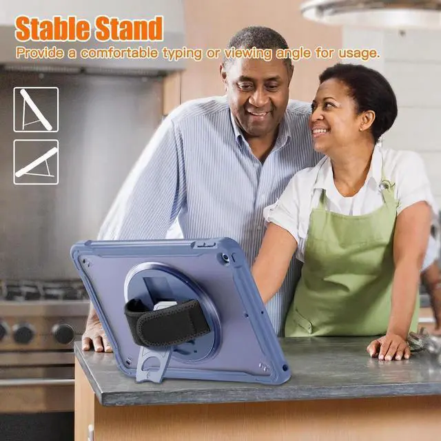 Stable rotatable kickstand: The iPad case with built-in 360 degree stand supports vertical/horizontal viewing of videos, typing and conference. Pick a nice angle, free up your hands!Ideal for kids stay-at-home online education.