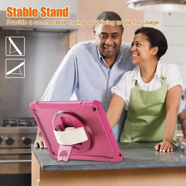 Stable rotatable kickstand: The iPad case with built-in 360 degree stand supports vertical/horizontal viewing of videos, typing and conference. Pick a nice angle, free up your hands!Ideal for kids stay-at-home online education.