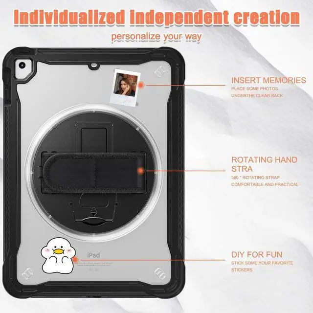 Stable rotatable kickstand: The iPad case with built-in 360 degree stand supports vertical/horizontal viewing of videos, typing and conference. Pick a nice angle, free up your hands!Ideal for kids stay-at-home online education.