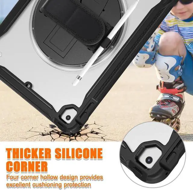 MILITARY-GRADE PROTECTION: iPad case Certified 15ft drop test, equipped with anti-collision impact-absorbing angle structure to disperse severe shocks. Shock-resistant, multi-layered iPad case with rugged PC clear back and flexible silicone rubber. Maximum protection for your devices.