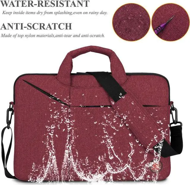 Water Resistant & Durable -- made of high quality anti-tear water-resistant nylon,keeping inside items dry against from splashing,even on rainy day.Excellent Sewing makes this laptop bag more durable,lasting much longer.