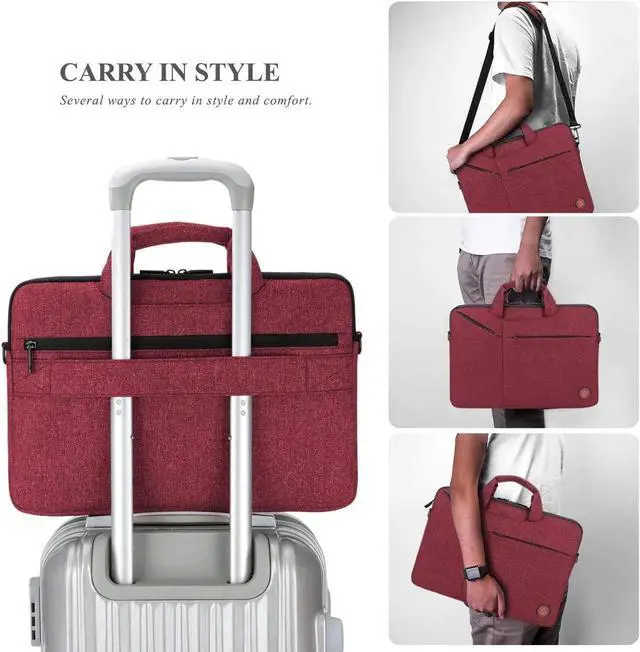 Very Portable -- You can carry this bag in your styles conveniently,carry it On hand by handles,On shoulder / crossbody by shoulder strap,over trolley suitcase with luggage strap,or hide the handles to be a laptop sleeve case.