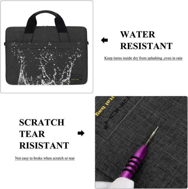 The safety of your laptop is our primary concern. A well thick foam padded built-in laptop sleeve with velcro strap provides extra protection, that effectively absorbs accidental bumps, reduces damages caused by impacts, and protects your computer from scratches.