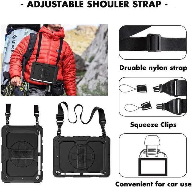 Package Includes: 1 x Shockproof Rugged case for ipad 7th generation 2019 Cover 1 x Shoulder strap 1 x Built-in Screen Protector (It's just an ordinary screen protector that you can remove if you don't need it. ) Adjustable/Detachable Shoulder and Hand Straps Shoulder Strap - Attach the strap to any two holes to carry your device vertically or horizontally on neck or shoulder like a crossbody bag, can also sling it on a car seat for viewing. Hand Strap - Adjust the tightness of the hand straps according to the size of the hand, hold the ipad 7th generation 10.2 securely and conveniently.