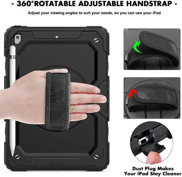 Kickstand Function: 360 Degree rotatable hand strap and Stretchable kickstand provides multi-angle customer experience. Adjust the tightness of the strap according to the hand size to hold the ipad 10.2 tablet securely and conveniently with one hand.