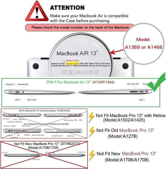 DESIGN: Designed to fit MacBook Air 13.3 inch Models A1466 & A1369 - Release 2017 / 2016 / 2015 / 2014 / 2013 / 2012 & (NEWEST VERSION)