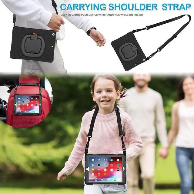 Removable & Adjustable Carrying Strap --- Portable Shoulder Strap allows to carry your iPad conveniently when you are at work, on a trip or outdoors. You could even hang it behind the head rest of car seat or wherever you want.