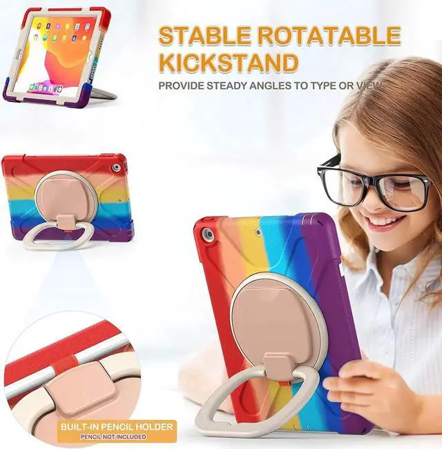 Full Body 3-Layer Protection --- Three layer structure design with built-in transparent screen protector, providing full body protection prevent from drops, shocks, bumps, scratches and dirt. No worry your iPad would slip out of your kids' hands and break.