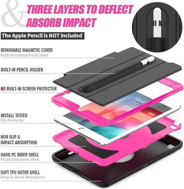 Please Note: Apple Pencil is not included!!! Drop Resistance This iPad mini 5 case will protect your iPad from dropping, shocking and scratching. No need to worry about accidental drop. Precise Cut-outs & Dust Proof Precise Cut-outs & Dust Proof Precise cut-outs and openings enable full access to screen, camera, charging, charging for Apple pencil, headphone port and all buttons, without having to remove the case Cover for each port prevents much dust from getting into iPad charge port or others. Package Contents 1×iPad Mini 4th/5th Gen case (Apple Pencil is not included!!! ) -No Screen Protector Included-