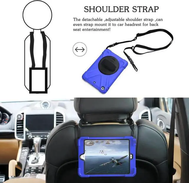 Carry It Around with Ease: The TSQ armor heavy duty rugged hard nonslip protective tablet case comes with a detachable and attachable carring shoulder strap, so that you can carry the iPad Air 1st on neck or shouder like a bag, can also sling it on car head rest. The hand handle strap is also adjustable, which allows you to securely grip your iPad with one hand.
