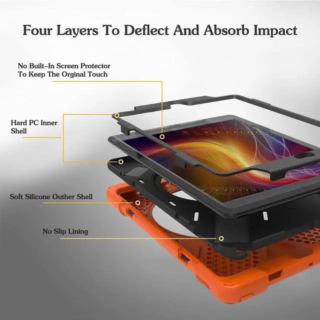 Three Layer Defender Case: Full body hybrid defender triple layers for extra protection. There are A inner hard polycarbonate shell, a soft shock resistant dropproof silicone outer shell and a front frame. This smart design provides iPad Air 1 with max protection. Extremely ideal for work, kids and children, including boys and girls.