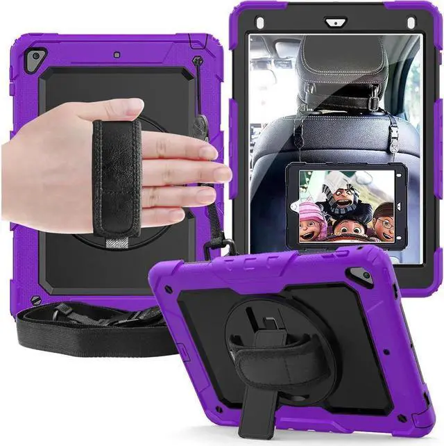 Compatibility: Designed specifically for New iPad 2017/2018 9.7 (iPad 5th/6th Generation)[A1822, A1823, A1893, A1954], for iPad air 2 [A1566, A1567] and for iPad pro 9.7 2016 [A1673, A1674, A1675]. Not for other iPad models. NO built-in screen film to keep the screen original touch feeling. Please confirm the product before purchase. Soft Hand Strap & Portable Shoulder Strap & Rotating Stand: Provide the securest protection and more convenience when you play or work with iPad. Hang it anywhere for your better entertainment, make your hands free. 360 Degree rotating Kickstand provides multi-angle viewing, with soft handle strap, easier to use your iPad in your outdoor travelling, working, gaming with kids.