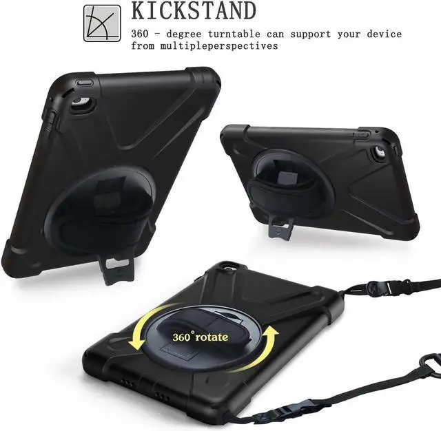 Compatibility: This product has a series of models with different colors for tablet but only for iPad mini 4, NOT fit other models. Please confirm the product before purchase. Unique multifunction three layers rugged protection design case with kickstand + a hand strap + a shoulder strap. 360 degrees rotatable kickstand & The adjustable hand strap mechanism for better experience with your iPad. Ideal for kids, students, teachers or anyone else who needs it for presentations, conferences and travelling. Adjustable removable shoulder straps. Attach strap to any two holes to carry your device vertically or horizontally like a messenger bag / neck bag / sling / harness or holster. allows you to display your tablet behind one seat for personal viewing or between two seats for shared viewing Professional Design Drop proof Case ONLY for ipad mini 4