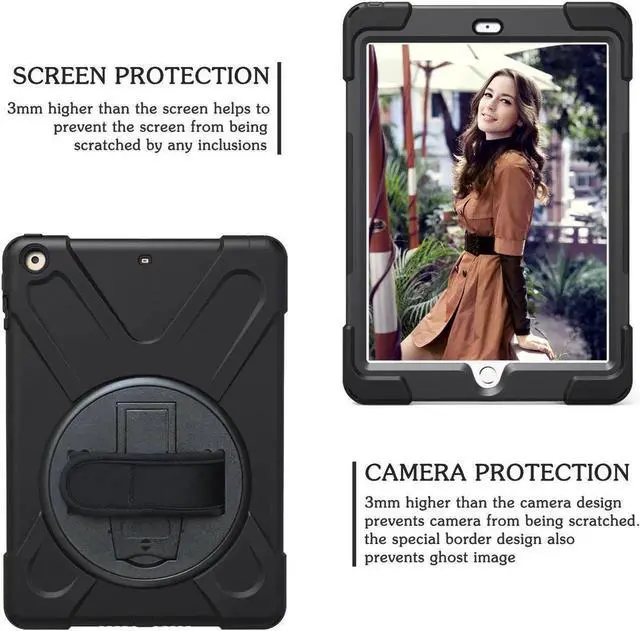 360 degrees rotatable kickstand & The adjustable hand strap mechanism for better experience with your iPad.Ideal for kids, students, teachers or anyone else who needs it for presentations, conferences and travelling.