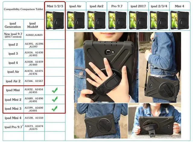 Compatibility:This product has a series of models with different colors for tablet but only for iPad mini 1 2 3 , NOT fit other models.Please confirm the product before purchase.
