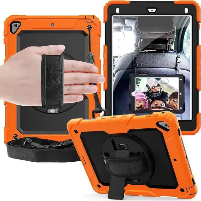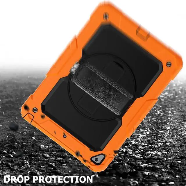 Compatibility: Designed specifically for New iPad 2017/2018 9.7 (iPad 5th/6th Generation)[A1822, A1823, A1893, A1954], for iPad air 2 [A1566, A1567] and for iPad pro 9.7 2016 [A1673, A1674, A1675]. Not for other iPad models. NO built-in screen film to keep the screen original touch feeling. Please confirm the product before purchase. Soft Hand Strap & Portable Shoulder Strap & Rotating Stand: Provide the securest protection and more convenience when you play or work with iPad. Hang it anywhere for your better entertainment, make your hands free. 360 Degree rotating Kickstand provides multi-angle viewing, with soft handle strap, easier to use your iPad in your outdoor travelling, working, gaming with kids.