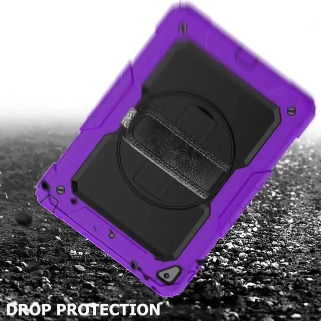 COMPATIBILITY: ONLY for New iPad 5th/6th Generation, as well as iPad Air 2 and iPad Pro 9.7. NOT fit other models. Please confirm the product before purchase. All in One 3 pieces combined installation, heavy duty full-body rugged case, with 360 rotating hand strap/portable shoulder strap, built-in kickstand, screen protector, and polycarbonate hard shell & silicone premium material. 360° Built-in Kickstand The built-in kickstand will set both hands free, whether you are watching video or playing games. 360° rotating Stand allows custome landscape or vertical viewing. Prevention of Drop Damages Effectively keeps iPad away from damages of dropping, bumps and shocks, its excellent safety performance will prolong the lifetime of the iPad 6th/5th. Adjustable/Detachable Shoulder/Hand Strap Adjustable/Detachable Shoulder Strap (total length: 172cm 67in) is more convenient for you to carry iPad. Easy to be attached and removed. With this strap, set your both hands free when you are working, playing game and on vacation, without the need of a purse, bag or backpack. It can hang from anywhere for better entertainment. It is also adjustable to fit with different occasions and for different people. The width is 2.5 cm (1in), which is comfortable when using it. Stylus Pencil Holder An extra Stylus Pencil Holder feature of this new generation case. Easily plug in/out, makes the pencil standing by your working. Unique Design to Protect iPad 6th/5th Better choice for your outdoor travelling, work and business. Create an ultimate protection for tablet, not only 360° Custome angles Hand Strap The adjustable/rotatable hand strap is made from premium soft fabric, fit for kids/adults, comfortable to hold th