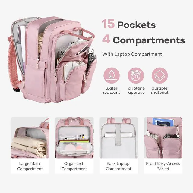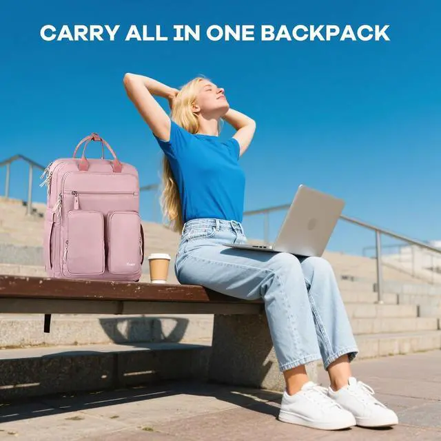 Comfortable Allday Carrycontoured shoulder straps, padded back panel, top grab handle, and luggagestrap transform this backpack for women college into a trolley sleeve or handheld bookbag for women for effortless travel