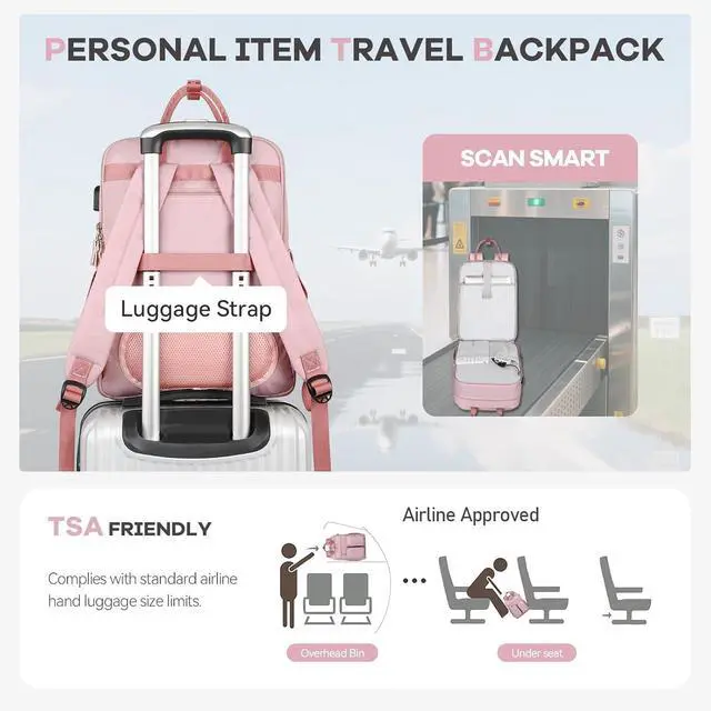 Breeze Through Security: Travel backpack carry on flight approved size: 16.5 " * 12.1 " * 5.9 ", Designed 180° TSAfriendly zipper opens flat for quick access to your laptop in this backpack for college, letting you keep your device inside during screening