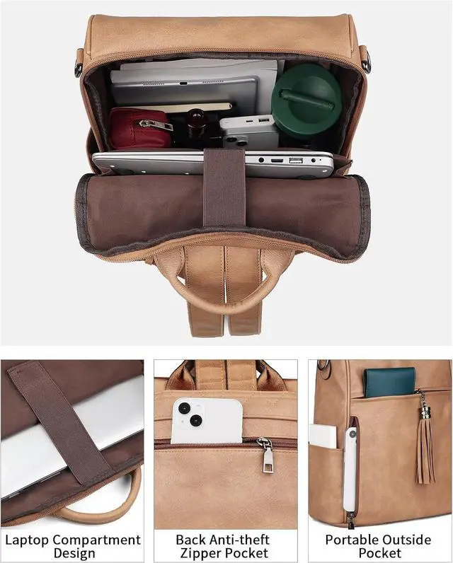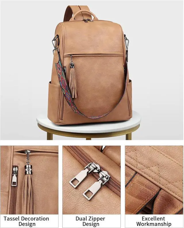 Design: The leather laptop backpack for women adopts the design concept of light and practical, that laptop backpack looks rather simple and fashionable. The popular convertible design (backpack to shoulder bag) makes this convertible backpack suitable for a variety of use scenarios; and the design with colorful shoulder straps and tassels makes the leather backpack distinctive. The leather laptop backpack is available in a variety of colors and leather styles for easy fashion matching.