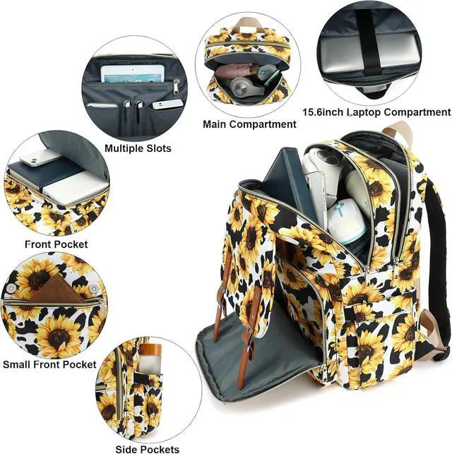 Dimension: 11.8 " x 5.9 " x 16.3 " inch, Large Capacity Compartments with roomy storage space makes your belongings well organized. One main spacious packing compartment with laptop sleeve for daily necessities, like binders, clothes, laptop, books, tablet and more accessories. Two front pockets keep your wallet, cards, keys and other items easier to find. Two side pockets for water bottle and umbrella.
