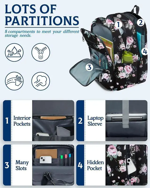 EVERYTHING IN ORDER: Designed with 8 compartments in various sizes to meet your storage needs, it has a padded laptop sleeve, interior zip pockets and slots, and even a key strap; everything has its own place