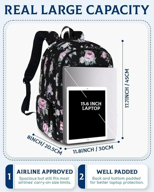 ULTRA LARGE CAPACITY: This bag is 12" (L) x 8" (W) x 17.7 " (H); it' s spacious enough to fit a 15.6 " laptop, tablets, binders, folders, clothes, water bottles, umbrellas, a lunch box, and other everyday necessities