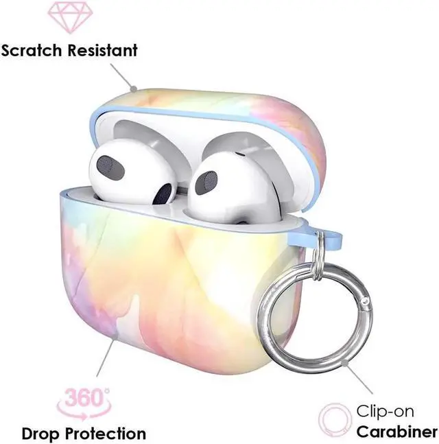Make your AirPods 3 stand out with a stylish, protective case! Paired with a metal carabiner that you can clip to your keys, bag, or pants for easier access and less misplacing! This 2-piece, hard case is created with premium materials that won't fade in color, scratch easily or crack. Compatible with wireless charging. AirPods 3 not included.