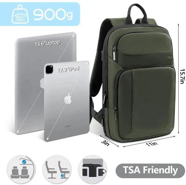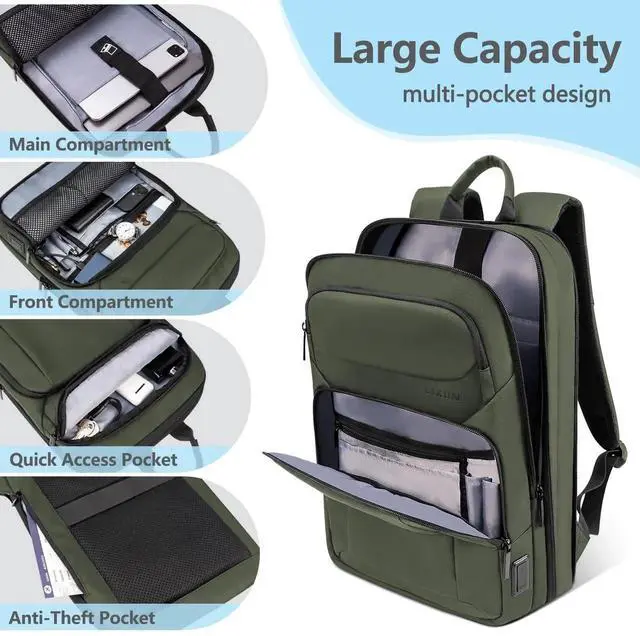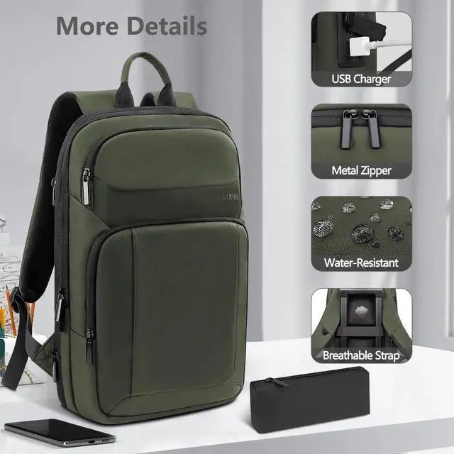 Backpack for Men Slim & Expandable Travel Laptop Backpack with USB Charging Port Water Resistant Anti-Theft Business Backpack Fits 15.6 Inch Laptop for Commute Work College with Small Bag (Olive Green)