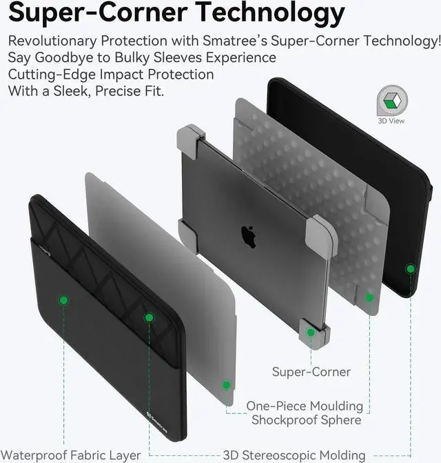 Smatree 13 inch Laptop Sleeve for 13.6 inch MacBook Air M4 2025/2024 M3 A3113/2022 M2 A2681, for MacBook Pro M2 2022/M1 2020-2016 A2338, MacBook Air M1 2020-2018, Laptop Case with Pocket (EA21)