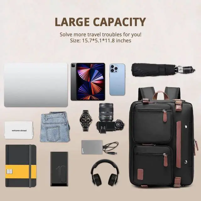 3 in 1 Laptop BackpackNot just a bag! Molnia laptop backpack can be used as a backpack, briefcase, or messenger bag, which can meet your different needs. The laptop backpack is suitable as a large travel backpack and business backpack for men. Perfect for work/commuting/occasional international travel/airplane trips/hiking camping.