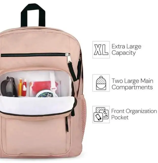 These extra-large capacity backpacks feature 2 large main compartments and a dedicated, padded 15-inch laptop sleeve. This pack is designed for comfort, with ergonomic S-curve shoulder straps and a fully padded back panel. Also features a front utility pocket with an organizer, a side water bottle compartment, and a zippered front stash pocket, ensuring you always stay organized with these spacious and convenient backpacks. At JanSport, we have been engineering high-quality, durable and reliable products since 1967, and we stand behind our large laptop backpack. This backpack for a laptop has been carefully designed to provide unmatched functionality, convenience and utility.