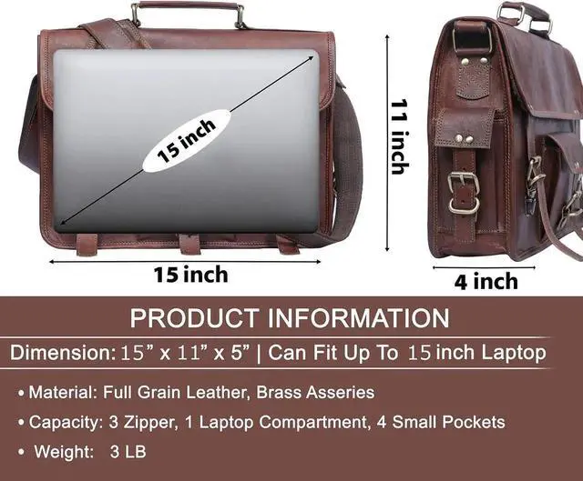LAPTOP & TABLET FRIENDLY: This Small Mens Briefcase Has A 14-inch Compartment for A Laptop, iPad, Tablet, Computer, Documents, Books, And More. This Leather Crossbody Bag Size Is 15 inches (width), 11 inches (height), And 4-inch (depth)