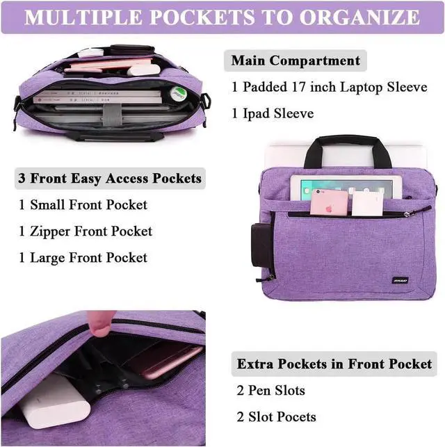 Multiple PocketsLaptop briefcase features 10 pockets which can hold your essentials separately and keep things organized.2 easy access front pockets,1 large front pocket with 8 card
