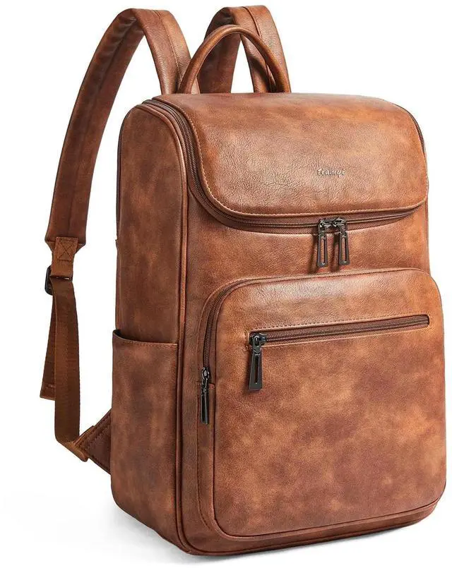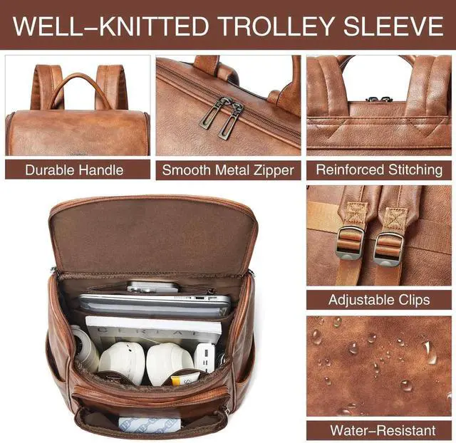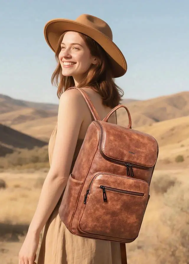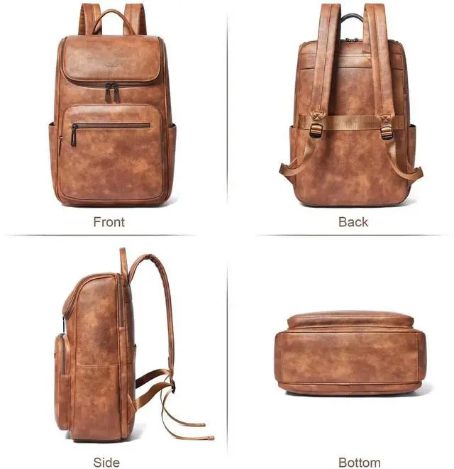 Large Capacity Backpack:Leather laptop backpack has 10 pockets, easy to organizing daily necessities such as laptop,iPad,A4 files, books,kindle,phone,chargers,umbrella,water bottle,wallets,cosmetics and everyday items. The womens laptop backpack suitable for various scenarios,including work,business,travel,commuting,college,daily use.